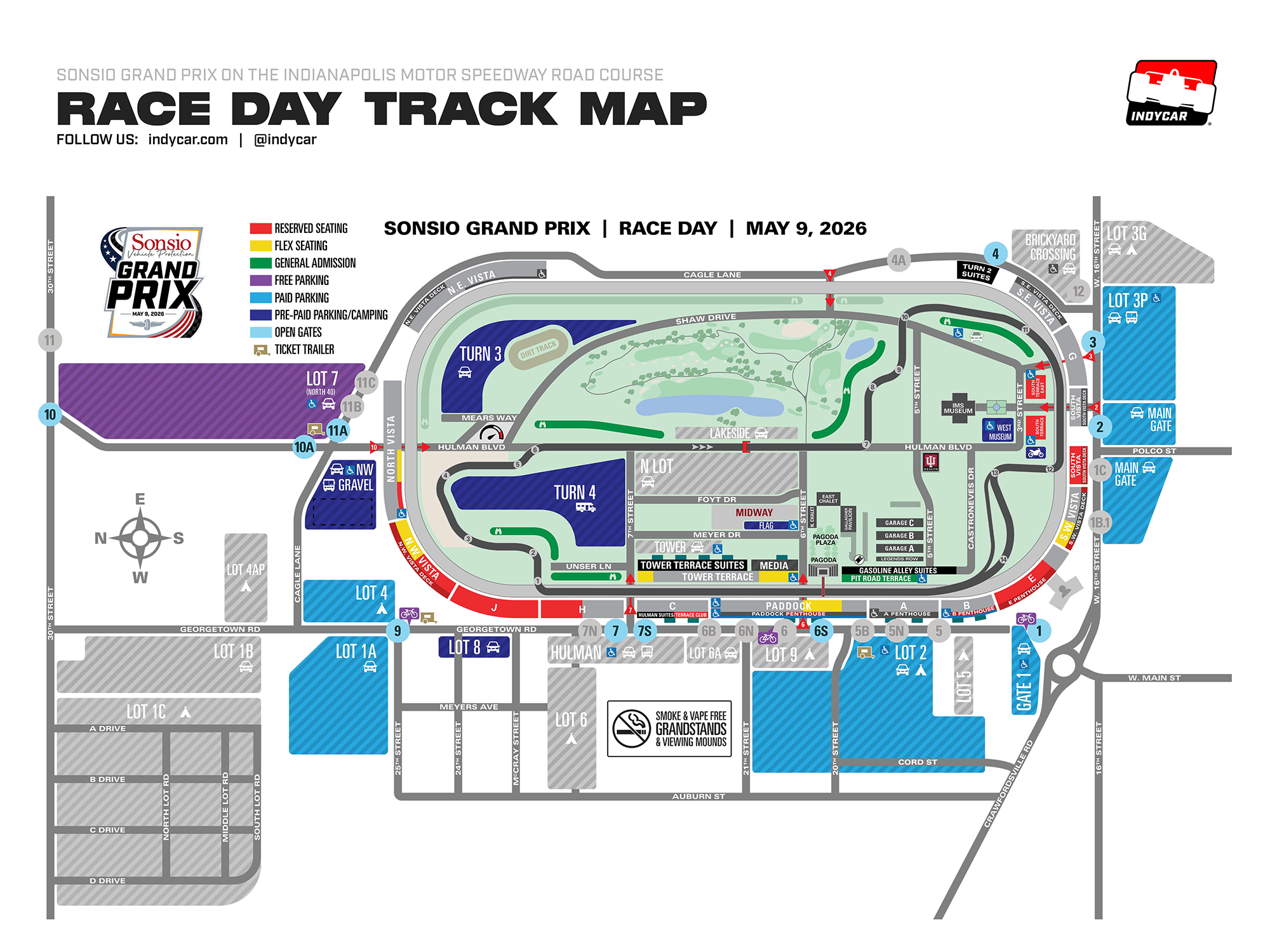 The 2.439-mile, 14-turn road course incorporates portions of Turns 1 and 2 and the frontstraight of the famed Indianapolis Motor Speedway oval and the remainder of the circuit is within the infield, allowing for great spectator viewing.