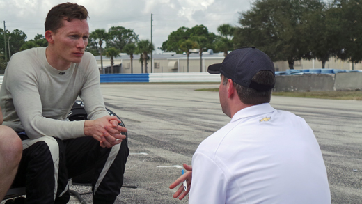 SEBRING, Fla. – Mike Conway selects a spot out of the direct rays of sun on the makeshift Sebring International Raceway pit lane to convene a conversation with Ed Carpenter Racing and Chevrolet engineers.